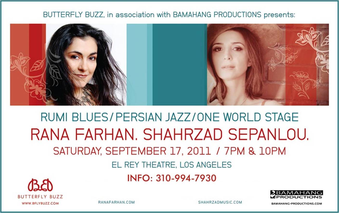 For the first time in Los Angeles, each performing selection of their individual repertoires; an intimate evening of Rumi Blues & Persian Jazz.