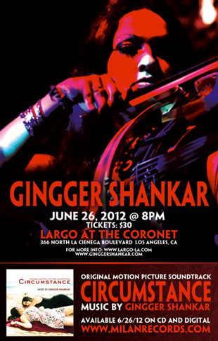 The long awaited soundtrack of CIRCUMSTANCE (the movie) by Maryam Keshavarz is scheduled for release on June 26th, with a launch party / concert in Los Angeles on June 26th, featuring the talented composer of the album, GINGGER SHANKAR. The album features artists including: Andy, Sussan Deyhim, Leila Forouhar, Shahrum Kashani, Zebazi, just to name a few!